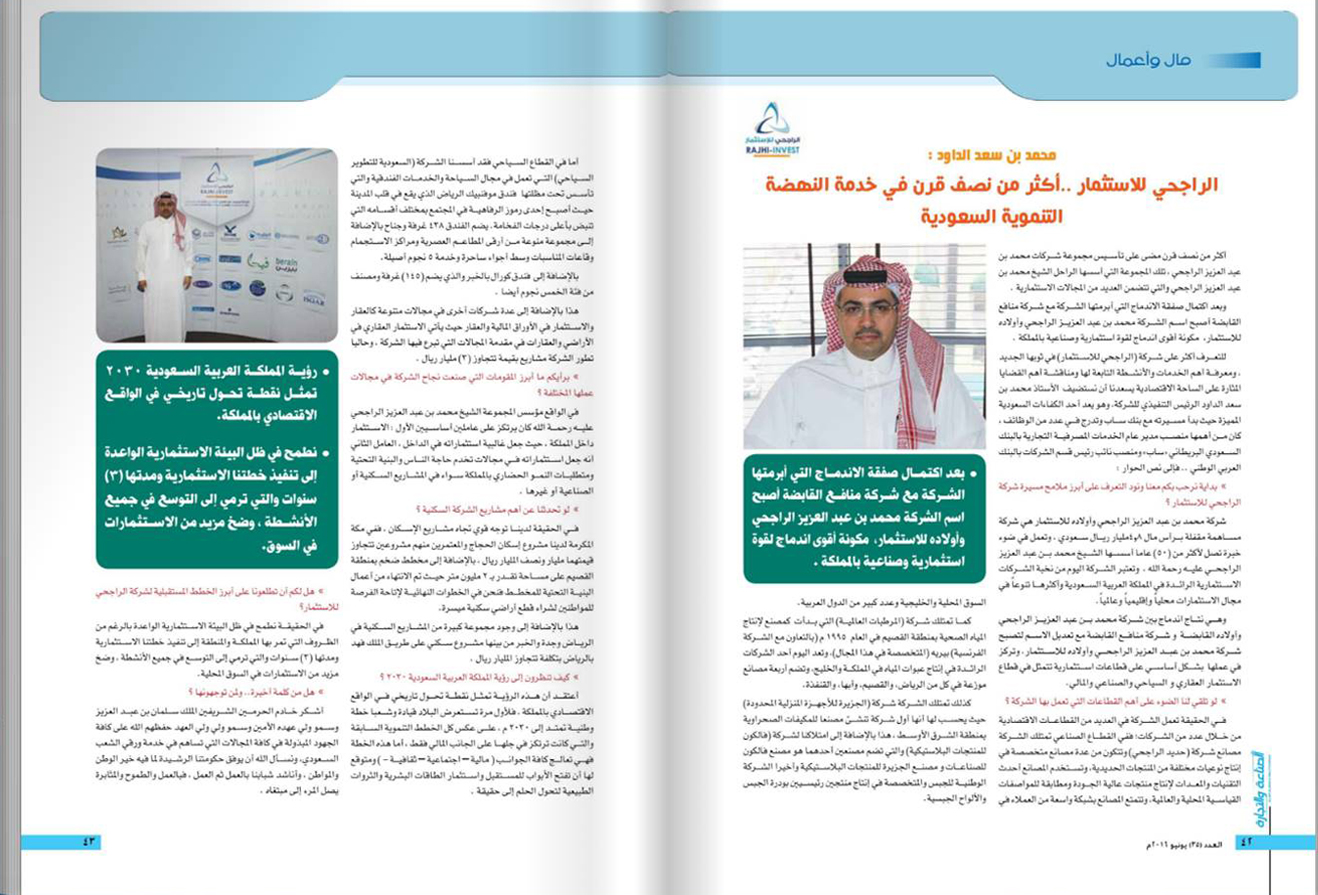 Mohammad AbdulAzizRajhi & Sons Co. manages a number of leading projects that are fundamental in the economic system of Saudi Arabia. Rajhi invest aims to benefit from its industry expertise and large managerial infrastructure in managing mega projects and develop new opportunities in the health, services, real estate, industrial and hospitality sectors.